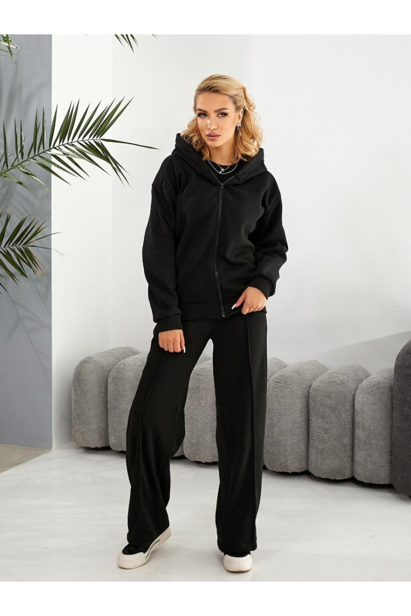 Спортивний костюм модель – 723-5423 Матеріал: тринитка з начісом високої якості Розміри: 42-44, 46-48 — Розміри: 50-52, 54-56 Кольори: чорний, темно-сірий, темно-синій, джинсовий Кофта вільного крою з капюшоном, застібається на блискавку Штани палаццо зі стрілками, 2-і кишені. ВИМІРИ модель 723-5423 42-44: Кофта: ОГ-116см, ОС-96см, довжина – 66см, рукав по внутр.шву — 50см Штани: ОТ-64см-86см, ОС-90см довжина — 107см, по внутр.шву — 78см 46-48: Кофта: ОГ-130см, ОС-106см, довжина – 66см, рукав по внутр.шву — 50см Штани: ОТ-68см-90см, ОС-102см довжина — 107см, по внутр.шву — 78см 50-52: Кофта: ОГ-140см, ОС-116см, довжина – 67см, рукав по внутр.шву — 50см Штани: ОТ-74см-94см, ОС-110см довжина — 107см, по внутр.шву — 78см 54-56: Кофта: ОГ-148см, ОС-124см, довжина – 67см, рукав по внутр.шву — 50см Штани: ОТ-78см-98см, ОС-116см довжина — 107см, по внутр.шву — 78см